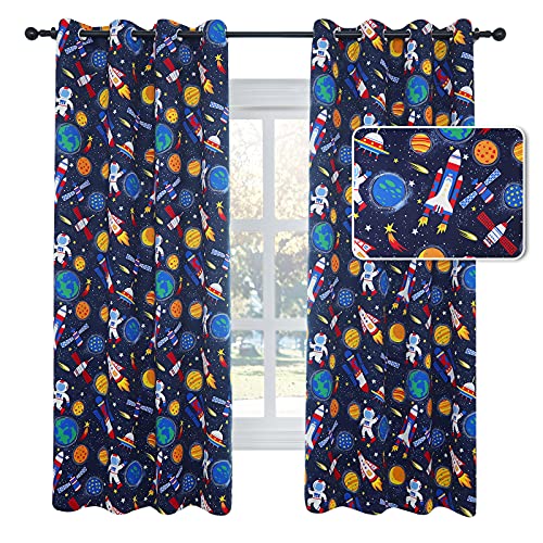עיצוב דמיוני: וילון האפלה בנושא מלחמת הכוכבים עם הדפסי טילים, ספינת אוויר וכוכב לכת מקשטים את חדר הילדים שלכם במסתורין כדי לפגוש את סקרנותם.